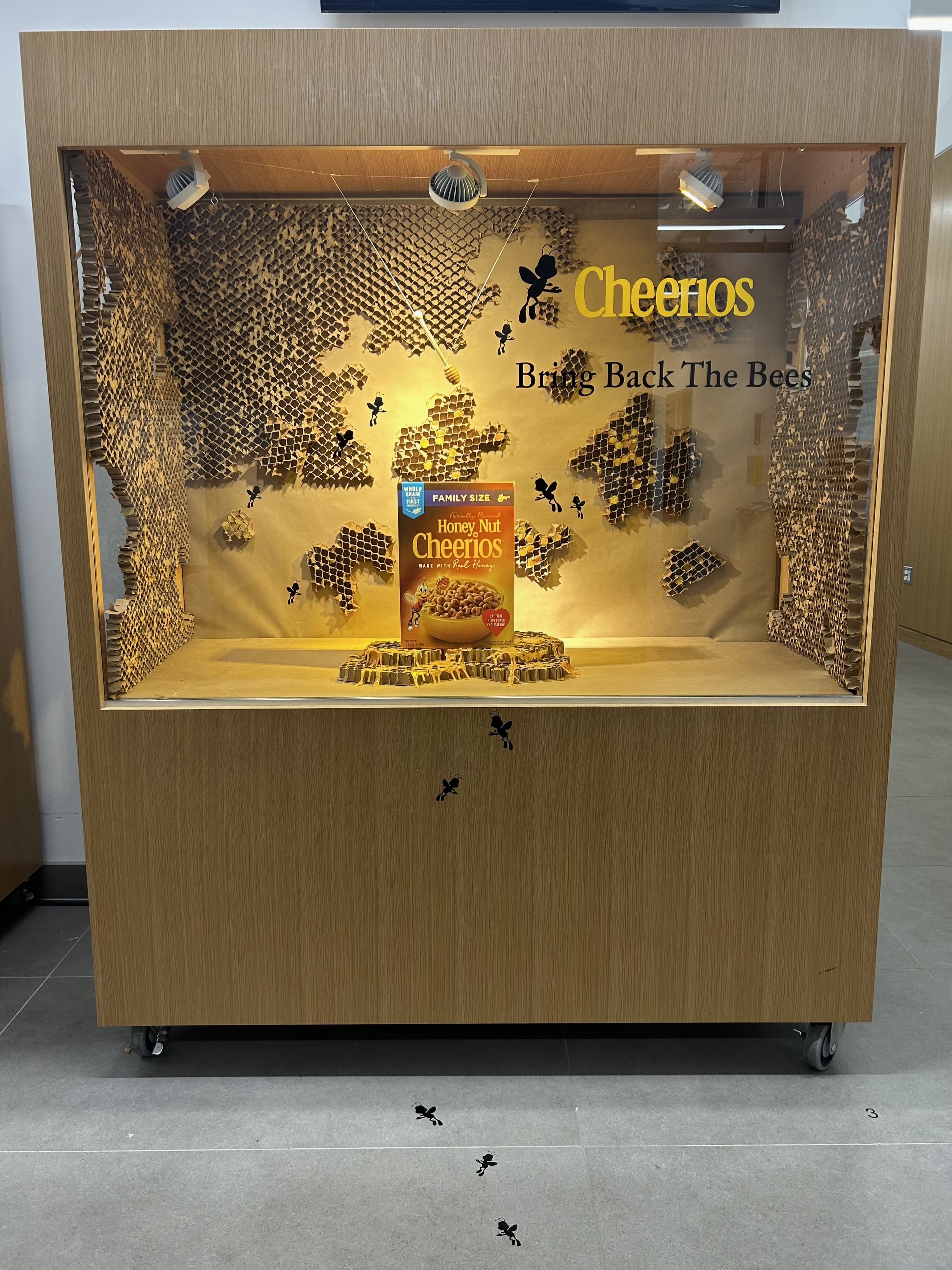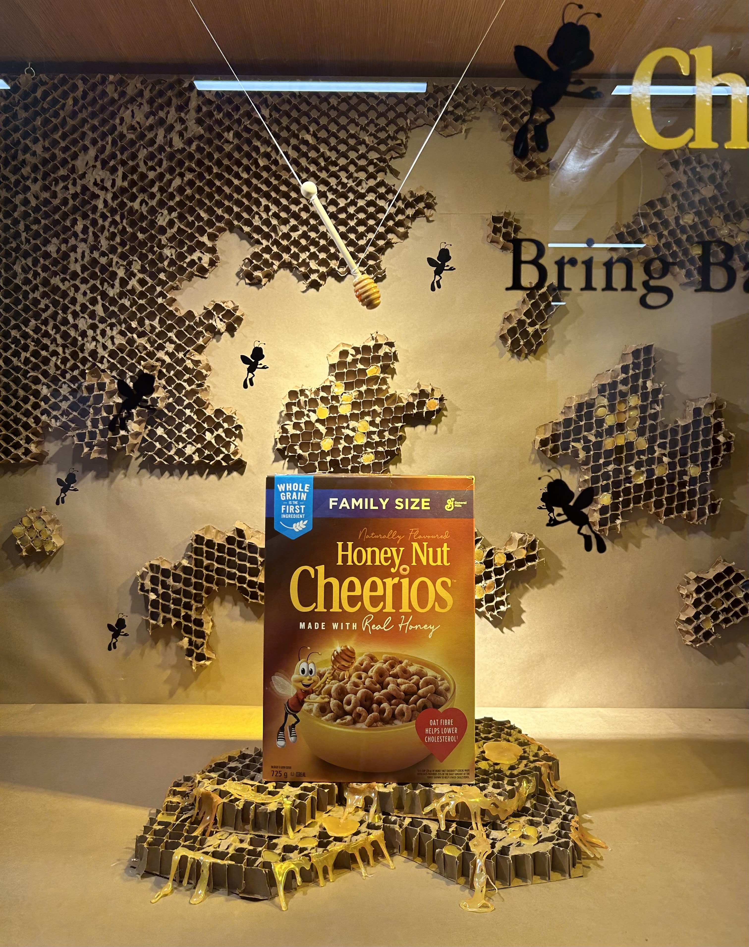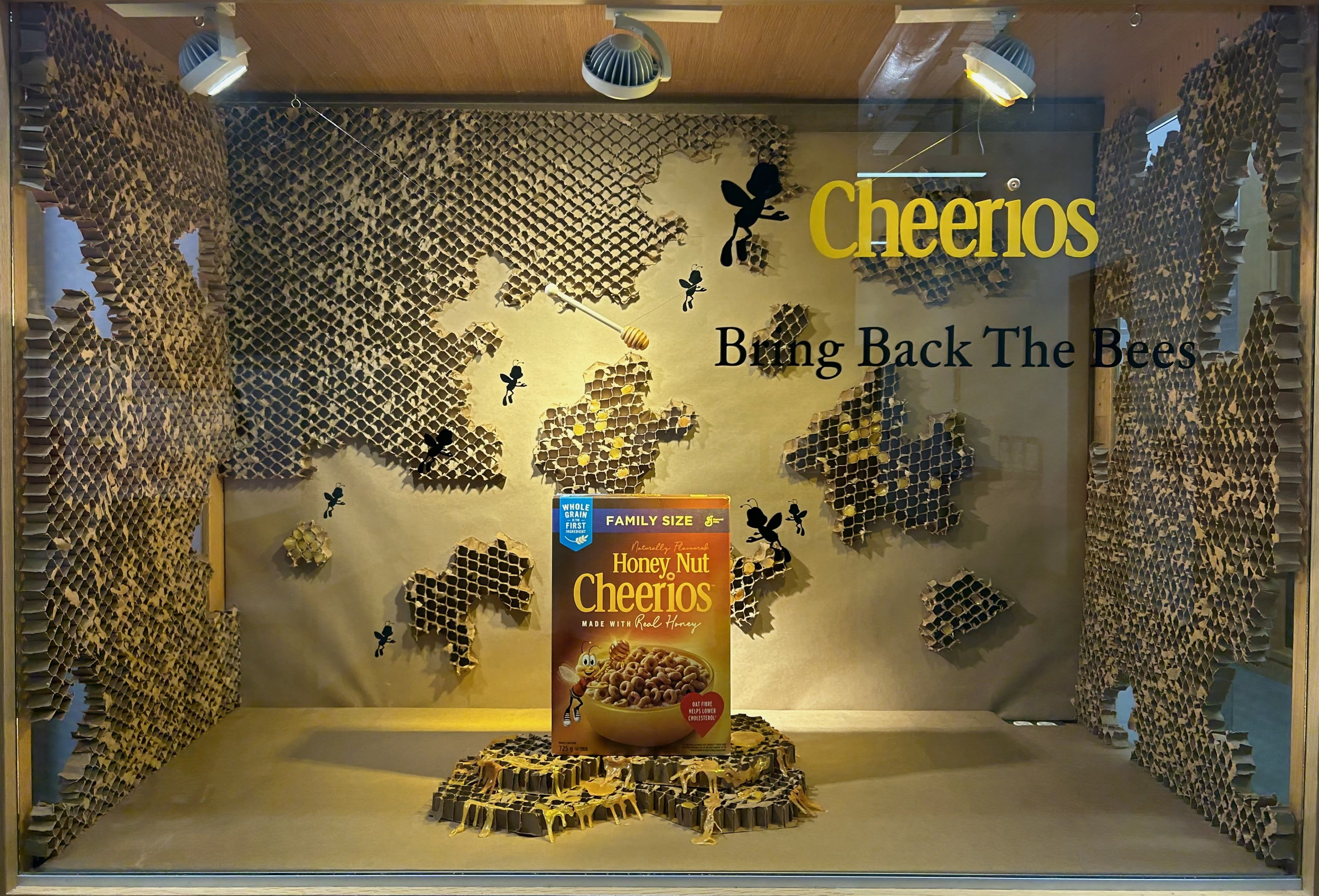 In this window display concept, we raised awareness about the critical issue of bee conservation while showcasing Cheerios’ commitment to sustainability. By creating a visually striking and educational display centered around the importance of bees, I seek to inspire individuals to take action and support efforts to protect vital pollinators.