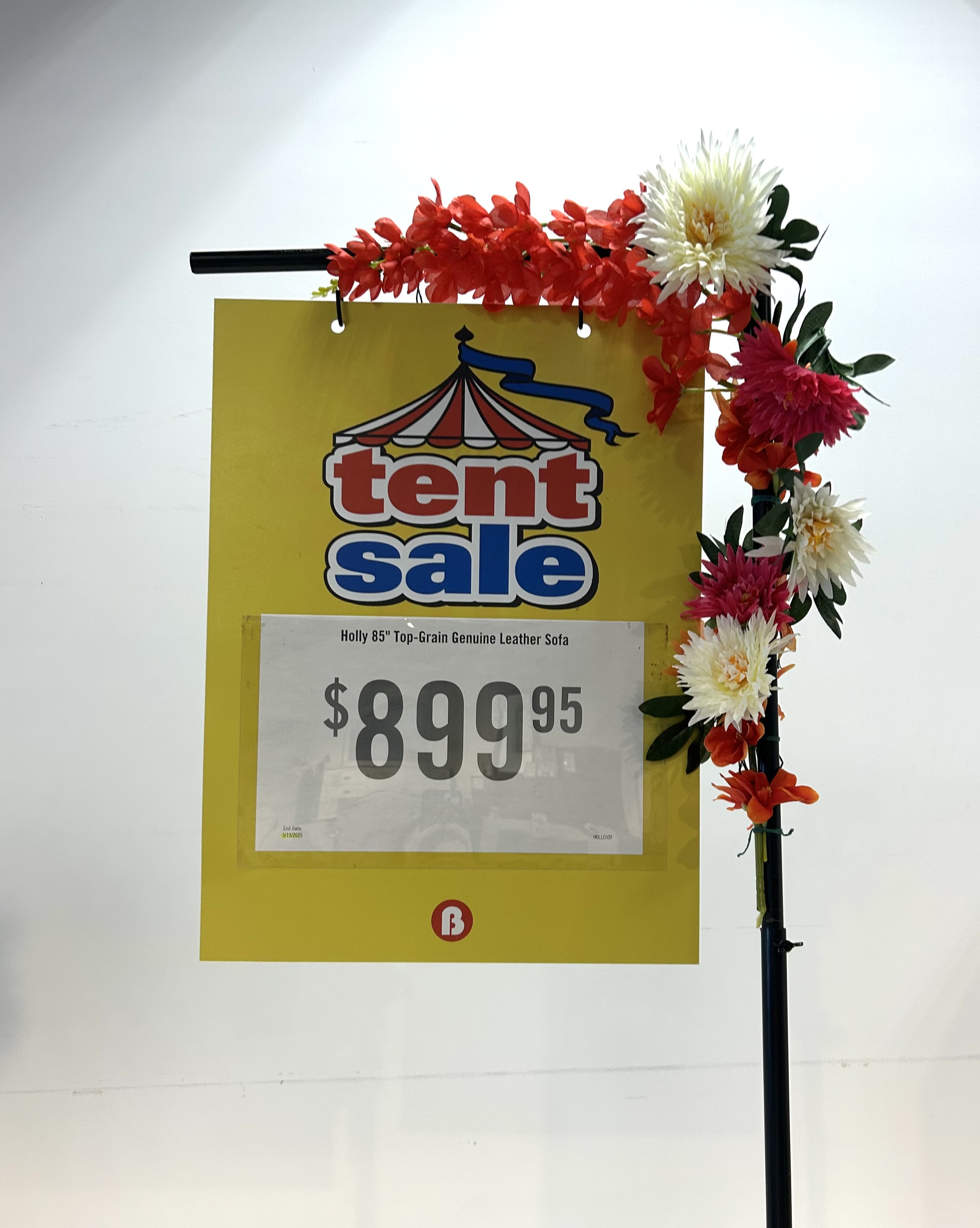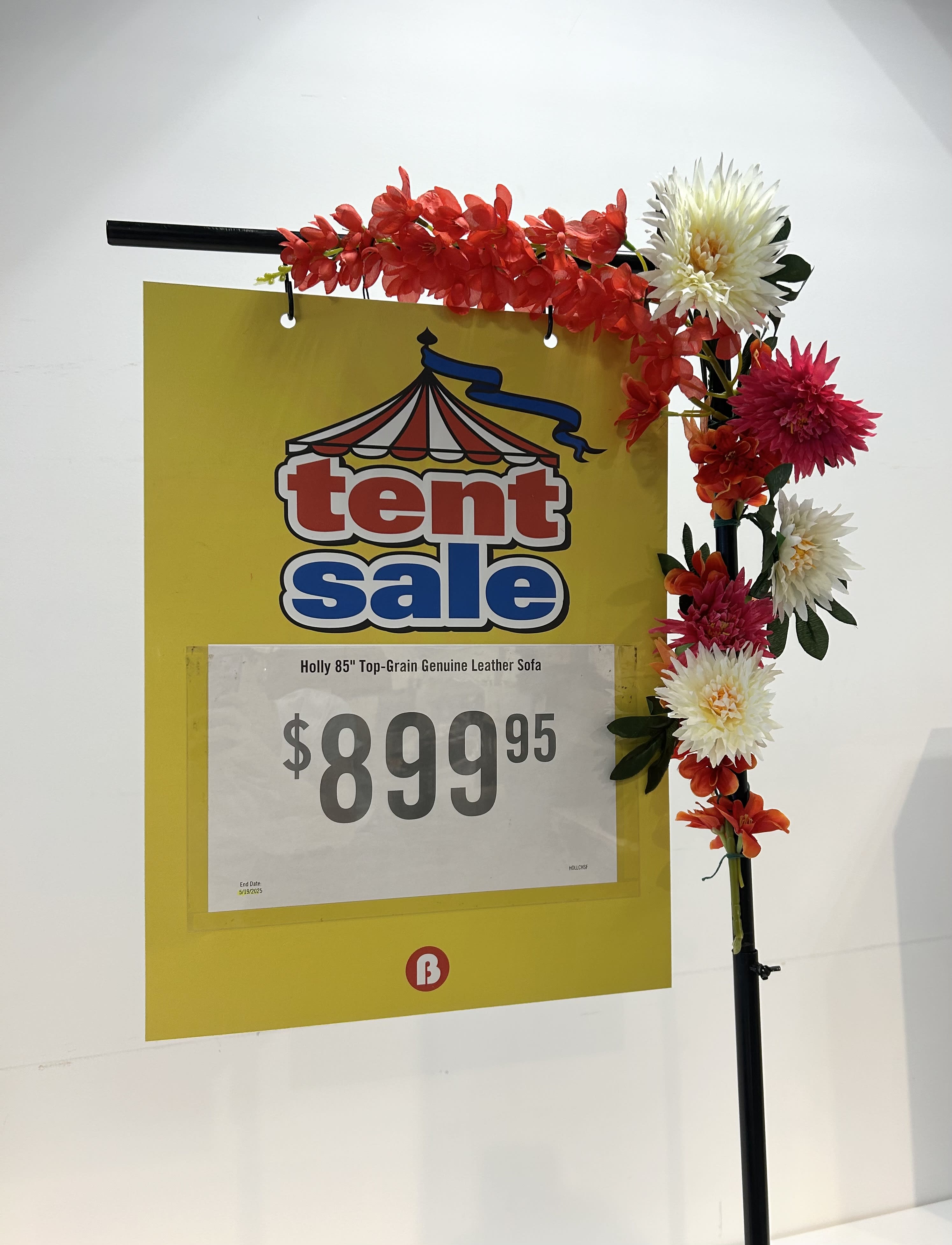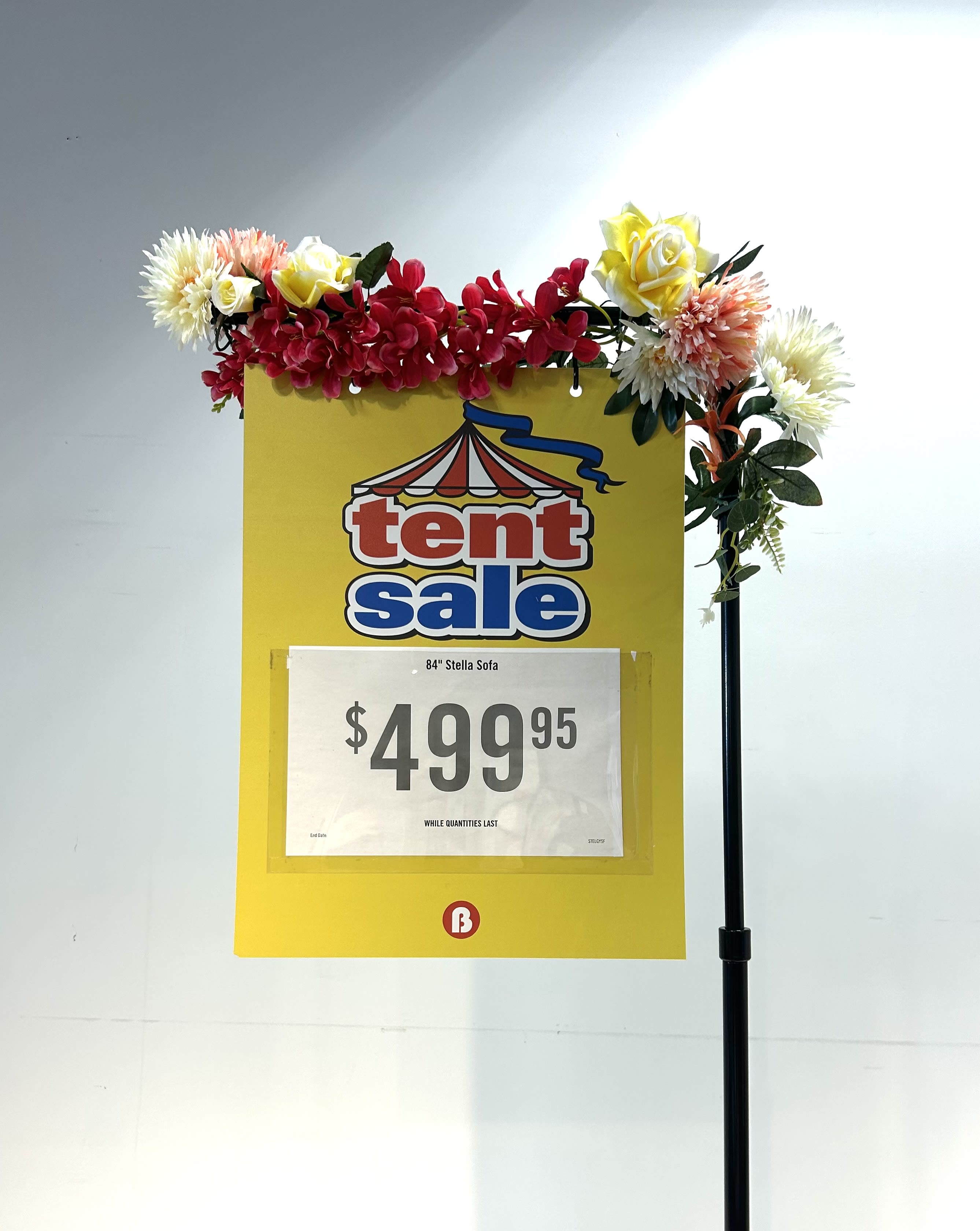 For The Brick’s May Tent Sale, I designed mega tags inspired by ‘April Showers Bring Mayflowers.’ Using vibrant faux flowers to wrap each tag instead of traditional décor, the floral approach adds a natural, inviting touch that connects the seasonal theme to the shopping experience, encouraging interaction and enhancing overall visual appeal.